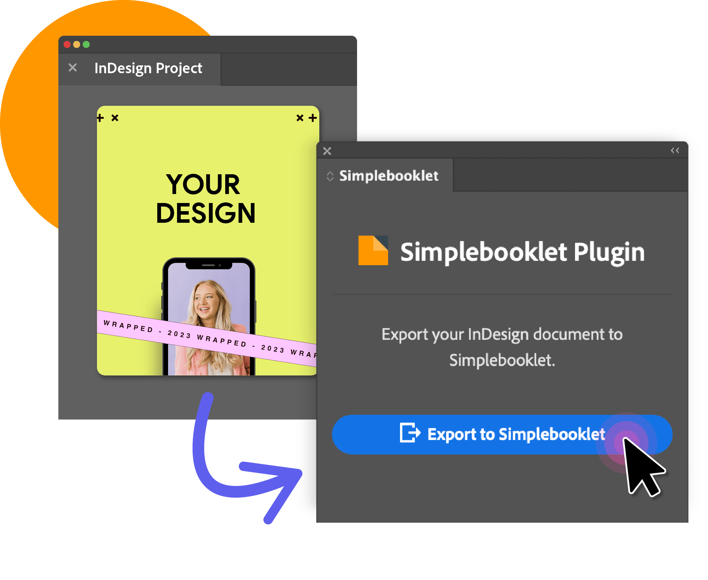 Built right into InDesign as a plugin, you can send your file direct to your Simplebooklet account. We'll take care of the rest, optimizing your file for the web and turning it into a professional, interactive digital experience that's ready to share, present, and track.